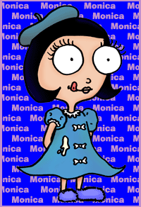 Name: Messy Monica Age: 8 and a half Voiced by: Cathy Cavadini First Appearance: Episode 6.01: "Another Fine Mess" Inspired By: Monica Lewinsky Memorable quote: |